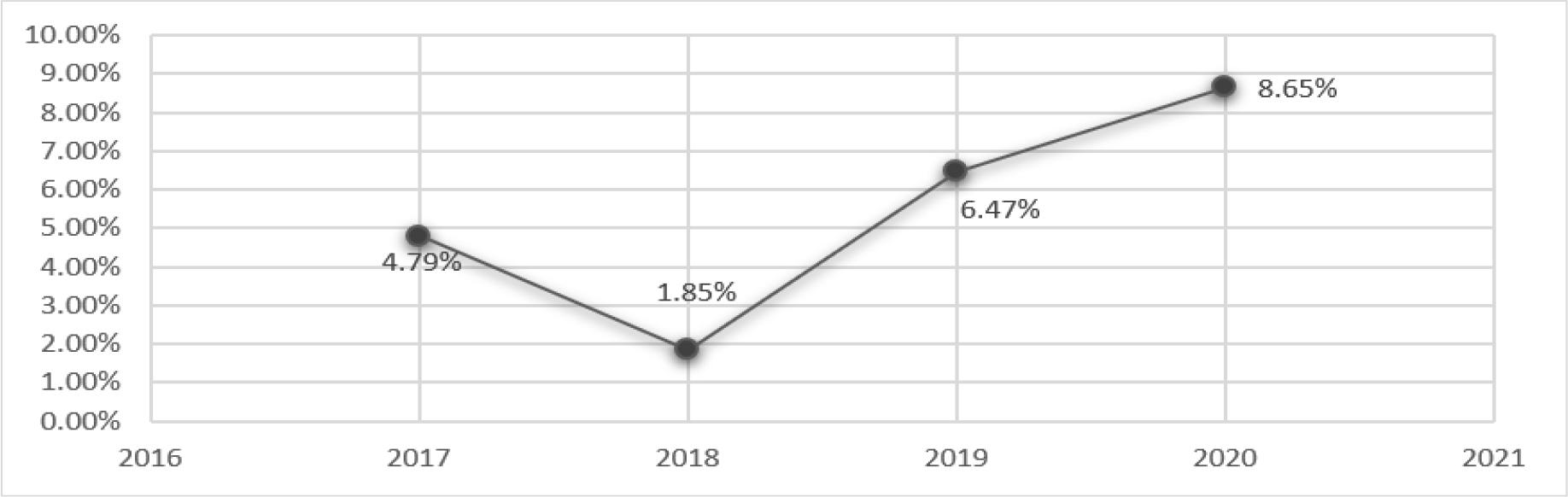 Interpretation: After the IPO in 2016, the debt ratio of biopharma increased slightly, with an average of 5.44% over the 2017-2020 period, slightly higher than the 5.38% before the IPO. In 2019 and 2020, the ratio rose significantly, especially in 2020 (8.65%), indicating increased use of bank financing. This suggests that after its IPO, the company started to rely more on debt, as it gained the confidence of banks following the IPO. This increased trust allowed the company to take on more loans and increase the proportion of debt to equity.