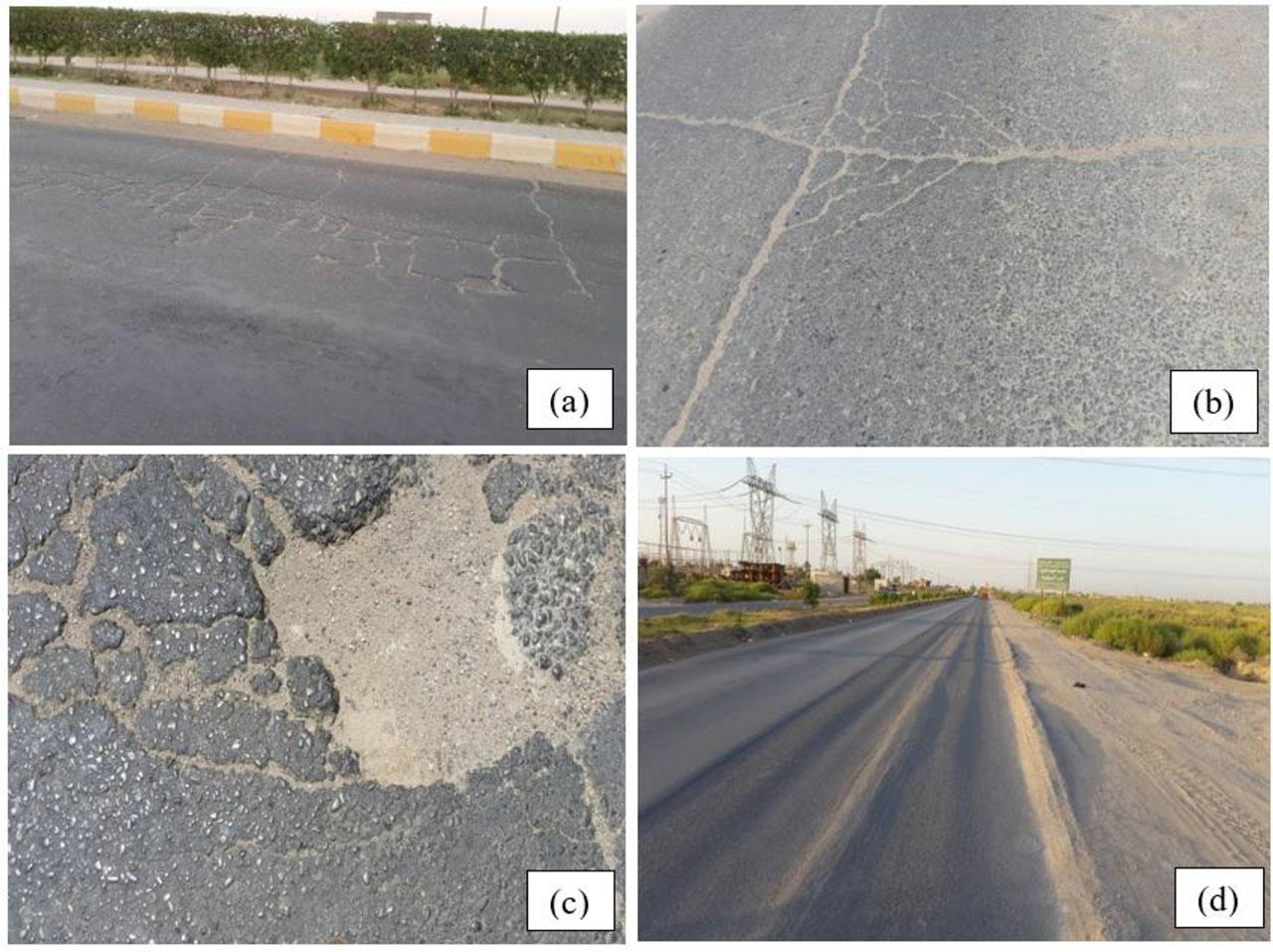 The number of holes, the size of the holes, the area of the cracks, the width of the cracks, and the damage to vehicle ruts are all included in the collection of information on road conditions. Figure (4) depicts descriptions of certain road situations. The cracked area, crack width, potholes, and ruts generated by vehicle wheels are all quantitative measurements of road damage based on the findings of surveys and investigations. To assess this quantitative data, the SDI approach was used.