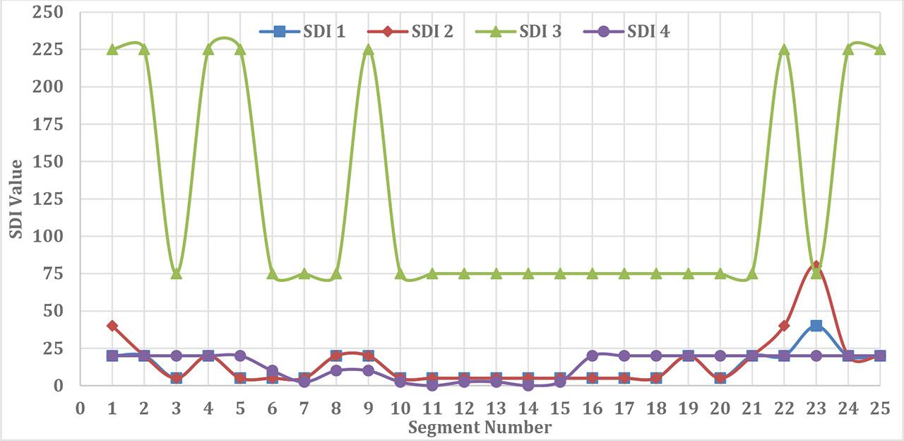 The Obtained SDI Values for the Road Segments.