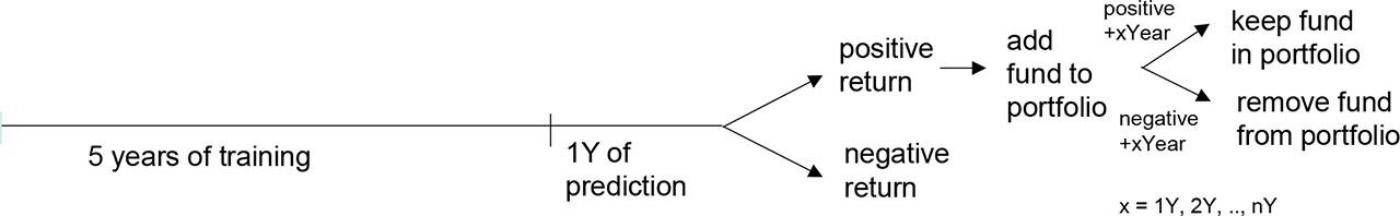 In the second stage, we used the forecasted fund returns from the first forecasted year to build a portfolio of winning funds (with equal weights assigned to each fund). This portfolio is rebuilt annually following a simple strategy, visualised in Figure 2.