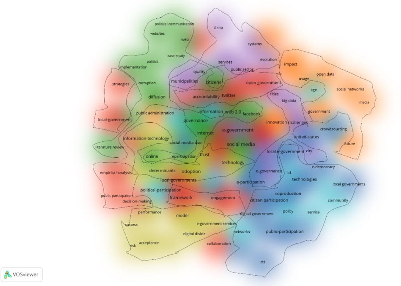 Abu-Shanab et al. (2019) analyzed articles published in 2018 by 11 selected journals in the e-government field. They concluded some of the topic clusters that recently appeared were e-democracy, voting and participation, e-governance, open government, and social media. Among those, some of the most frequently used terms associated with e-government in the last 5 years until 2017 were social media (72), e-participation (45), Open Government (44), and e-government (31).