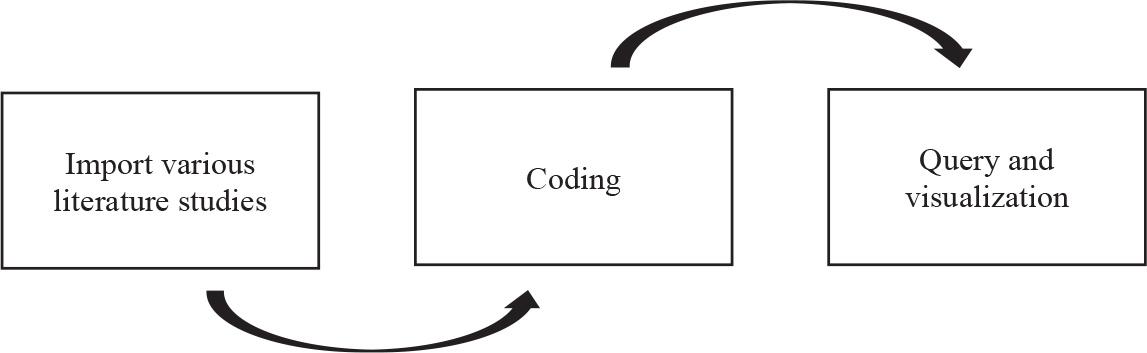 Of all the research stages, literature review is one of the research aspects that consumes the most energy and time. This is because literature review is an activity used by researchers to build a clear understanding of the area being studied and build arguments for the importance of the study, as well as providing direction for discussing research findings. The literature review process using Nvivo is carried out as illustrated in Figure 2.