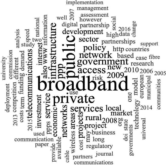 Based on the results of the autocoding analysis produced using NVivo, the selected papers are sufficiently in line with the formulation of problems and predetermined topics. The most common words that appeared are “broadband,” “public,” “private,” “government,” “policy,” “network,” “infrastructure,” and “PPP.”