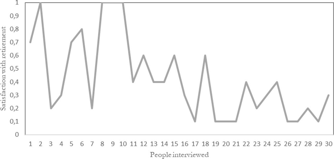 Level of satisfaction with retirement per person interviewed. Source: Fieldwork October 2019–January 2020 in Santiago, Chile.