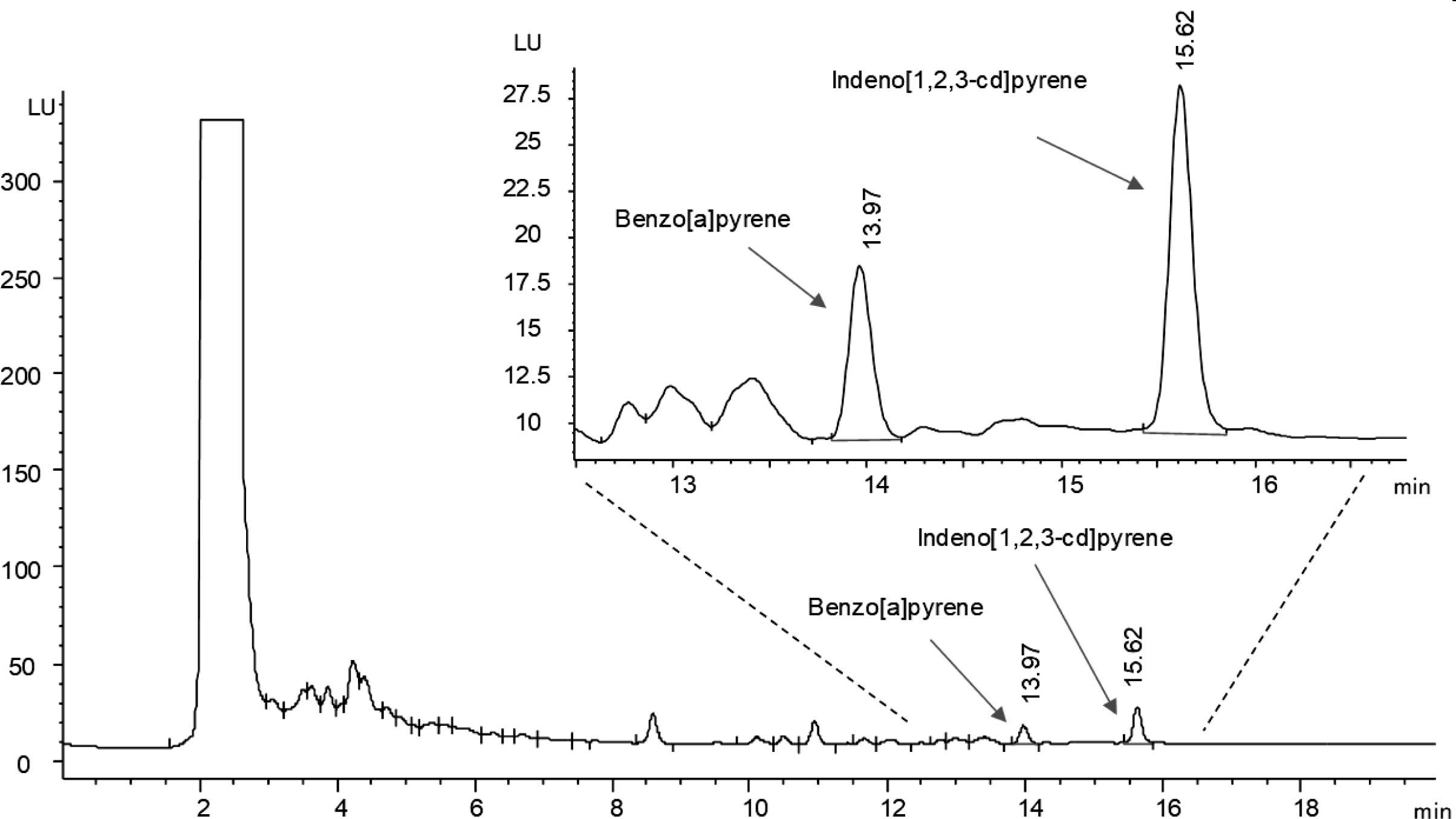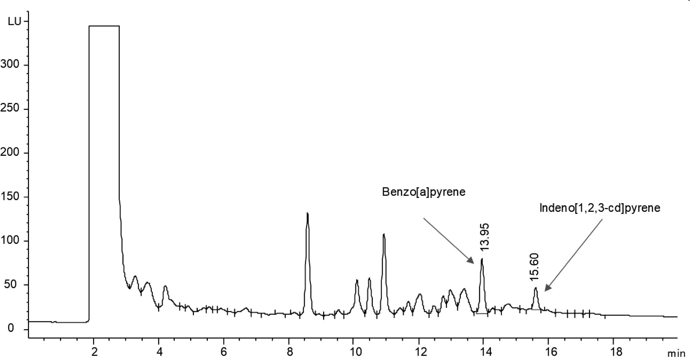 Typical chromatogram of a moist snuff sample (corresponding to about 7.6 ng/mL BaP).