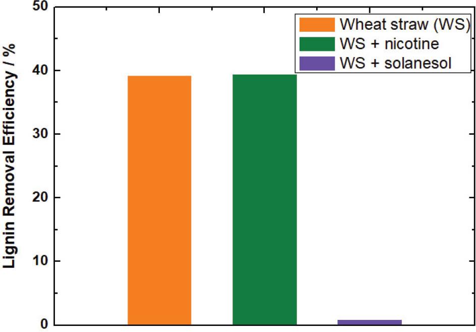 Lignin content of wheat straw, corncob and tobacco stem before and after ethylene glycol treatment_