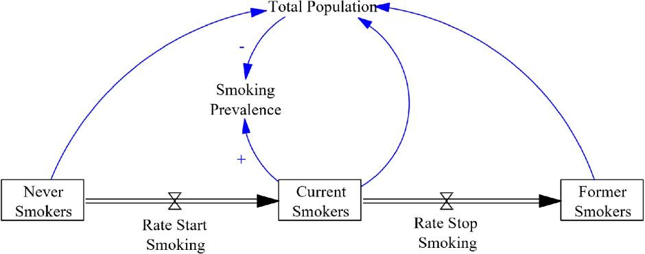 accelerating the rate people stop smoking (the outflow) as illustrated in the following stock and flow diagram (Figure 1).