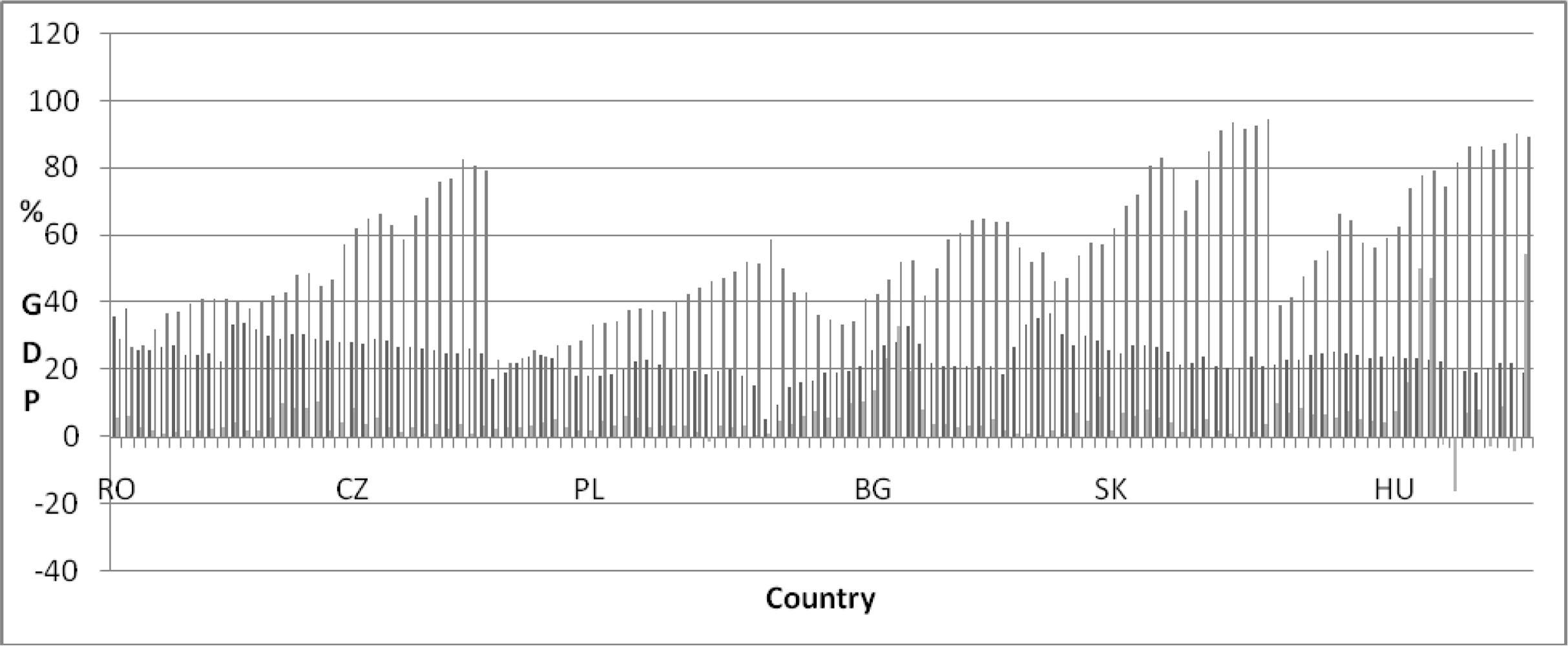 The evolution of the GDP per capita can be related to a set of variables, i.e. Gross capital formation, Exports and FDI (Figure 3). It can be argued that the entire group of countries are recording improvements in exports (with an outstanding position for the Czech Republic, Slovakia and Hungary). The group exhibits a rather homogenous gross capital formation trend, but differentiations in FDI as % GDP, Hungary and Bulgaria leading.
