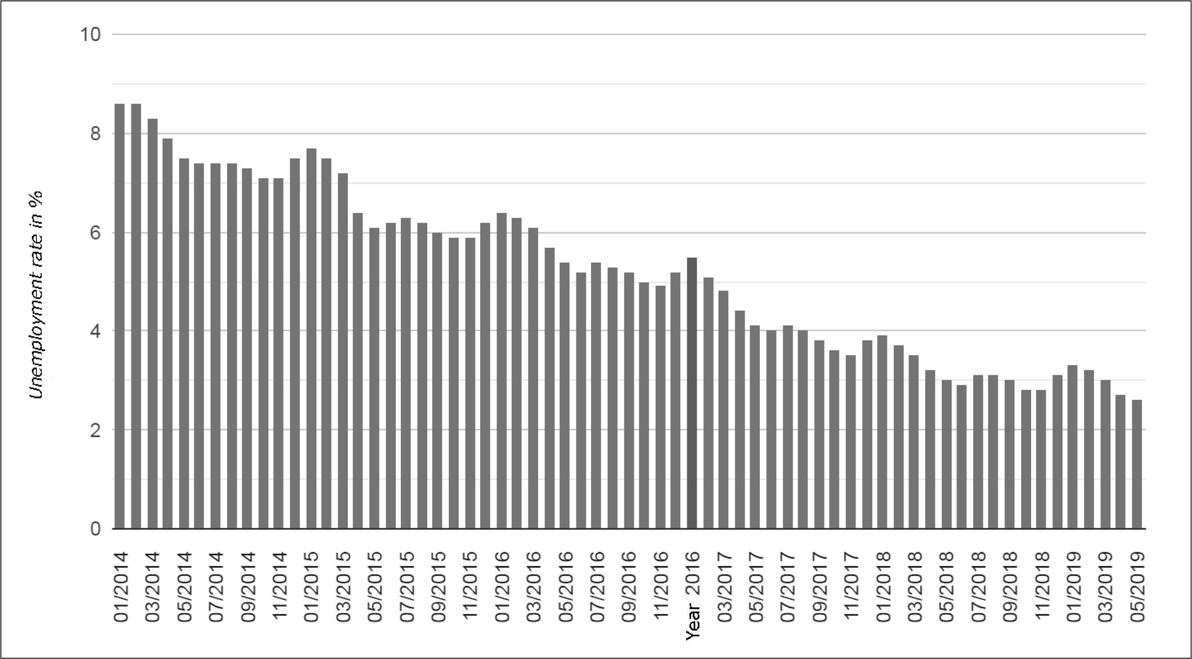 The unemployment rate in the Czech Republic has also been the lowest among the EU countries in recent years. The unemployment rate in the Czech Republic since 2014 up to the present is shown in Figure 5.