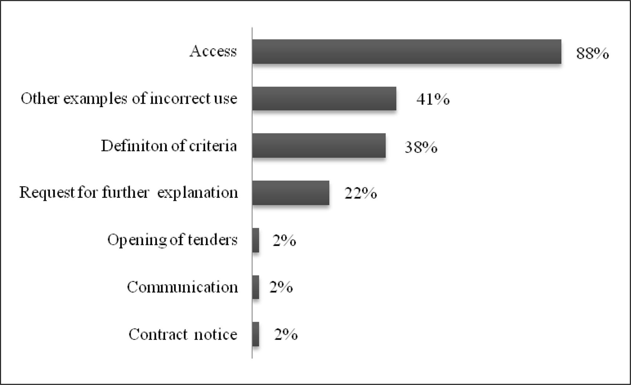 The Figure 3 shows that, in practice, the most commonly misapplied element is access to other tenders, followed by other examples of incorrect use, which are not listed in the ZJN-2 (i.e. other cases, such as changing the contract value, changing the tender after the deadline for submission), and the definition of criteria and their implementation in the selection phase. Access to other tenders gives the tenderers a competitive advantage in similar public procurement procedures in the future, which is why they often used this option and filed requests for access. However, most likely in light of possible lawsuits for the disclosure of business secrets (in fact, the tenderers tend to classify the whole or most of the tender as business secret), the contracting authorities denied access even to the part of the tender documentation that is deemed by law to be public information.