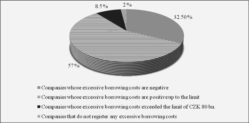 The calculation shows that most of the companies from our sample either do not record loans from related entities at all (49.50% of the companies), or do have loans, but the share of four times their equity to the value of these loans is higher than 1 and therefore no tax non-deductible costs due to the thin capitalisation rule (47.50% of companies) apply.