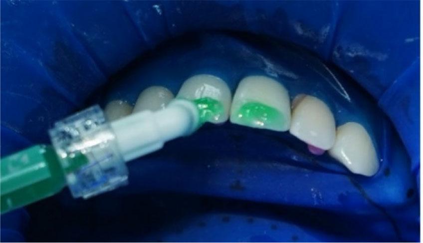 A resin infiltrant (ICON, DMG, Hamburg, Germany) is a new material released in the dental market for masking the enamel whitish discolorations (8, 14,15,16). This is a low-viscosity resin that penetrate, by capillarity, through the pores of the demineralized or hypomineralized enamel, altering the refractive index (RI) of the tooth structure and totally or partially masking the appearance of the enamel whitish discolorations (17, 18). The resin infiltrant fills the pores and change the optical propreties of the tooth, with no tooth reduction.