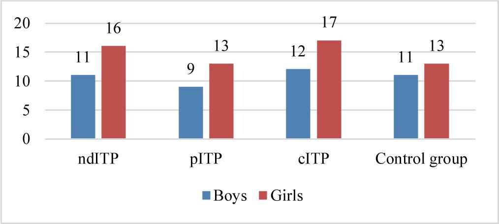 Number of platelets, mean volume of platelets and percentage of megakaryocytes in children with ITP