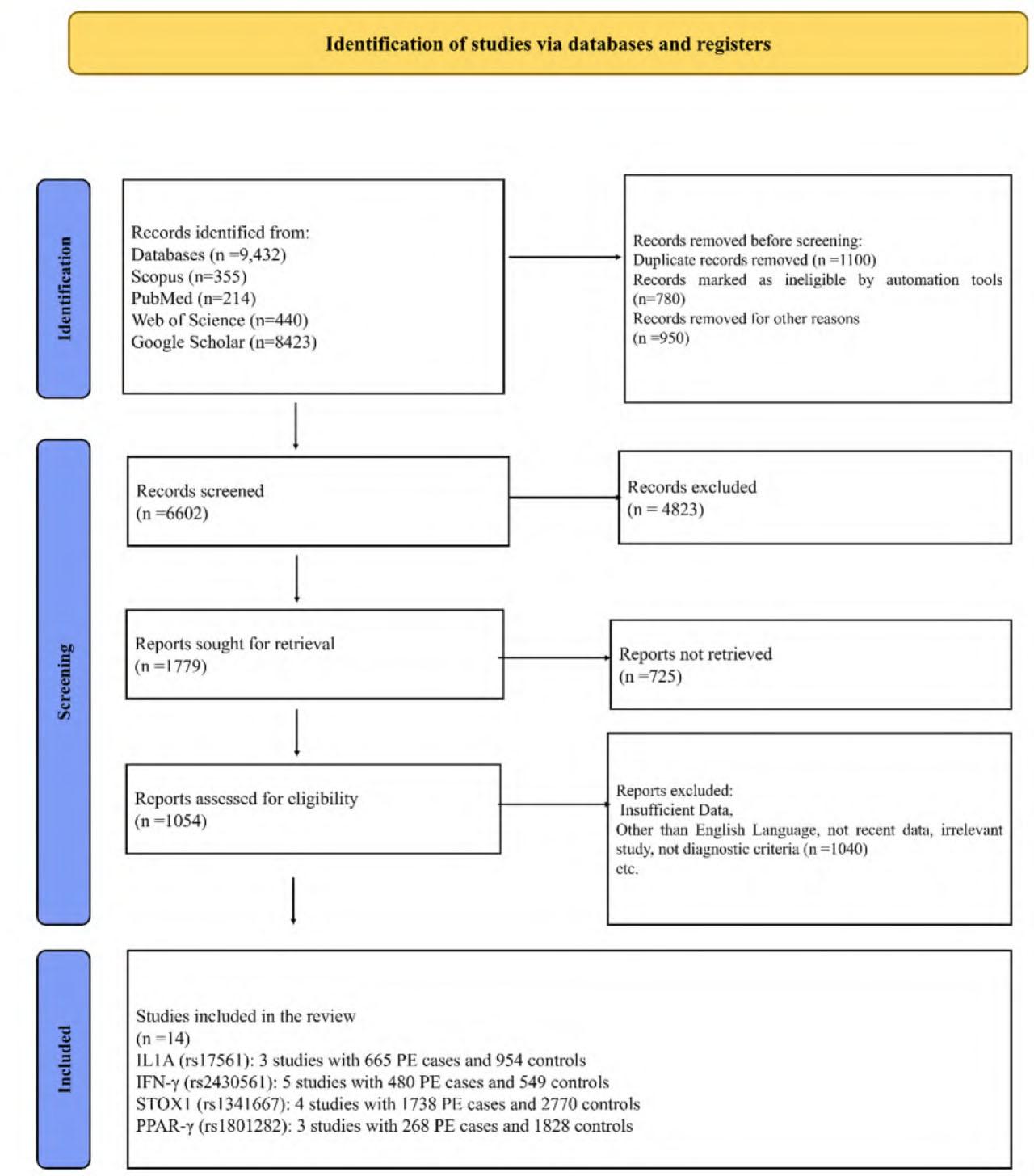 Characteristics of the studies for the association of IL1A rs17561, IFN-γ rs2430561, STOX1 rs1341667, and PPAR-γ rs1801282 gene polymorphism with PE