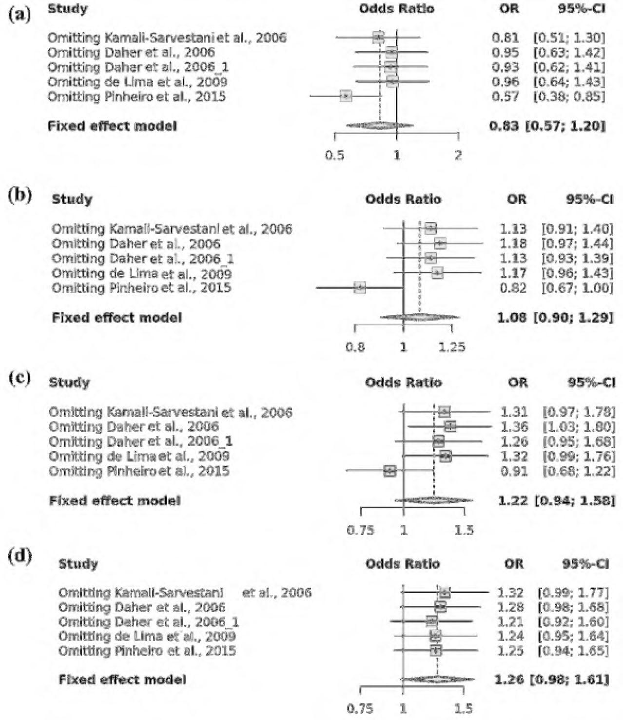 | PPAR-γ (rs1801282) | Laasanen et al., 2002[16] | Caucasian | Finland | 95 | 36 | 2 | 76 | 34 | 5 | 0.6334 | 0.6334 | 8 |