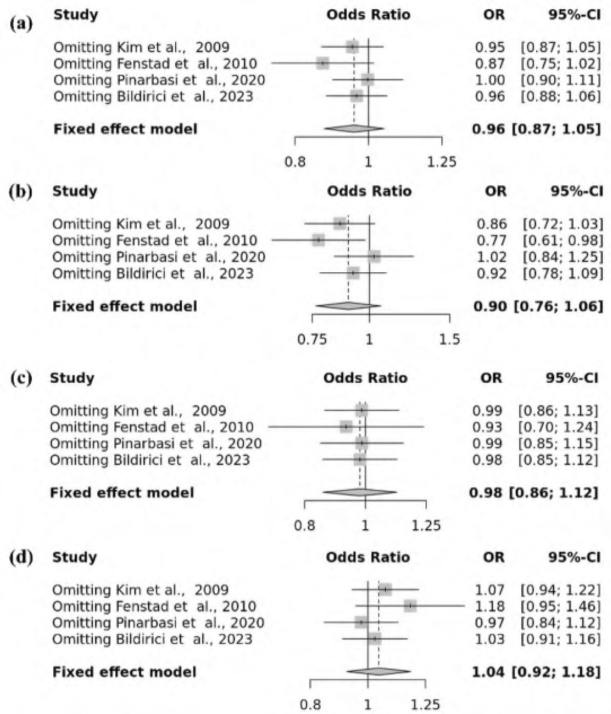 | Allele contrast (A vs. a) | Overall | 3 | 1.0252 | [0.7404; 1.4197] | 0.880652 | Fixed | 0.2569 | 0.2642 |