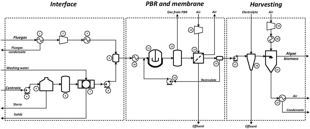 Mass balance table_ The results are calculated from the added AD effluent composition, current nutrient concentrations and in form of microalgae biomass (both harvested and remaining in the pond) as remaining biomass composition_