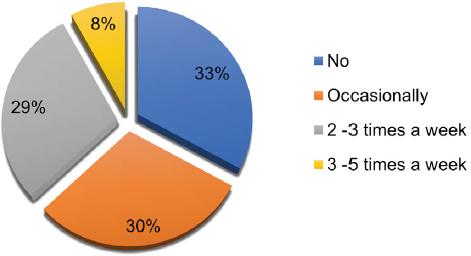 From this study it has been observed how the physical activity is beneficial on those who work out on a regular basis. However, only 17% of women examined worked out and reported positive results on their health conditions. In details, 33% of women did not work out and another important percentage (30%) worked out only when had time (Fig. 4).