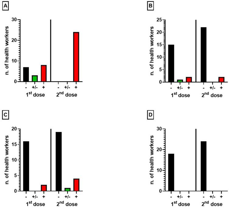 | 1st dose | Negative | 7 | 16 | 15 | 18 |
