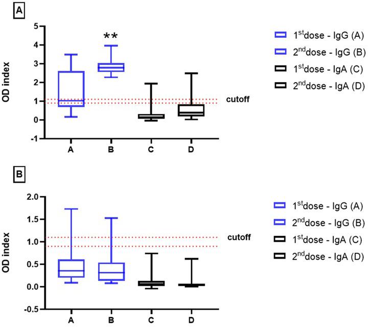 | IgG Cut off: 0.277 OD | IgA Cut off: 0.290 OD | IgG Cut off: 0.326 OD | IgA Cut off: 0.381 OD | ||||||||