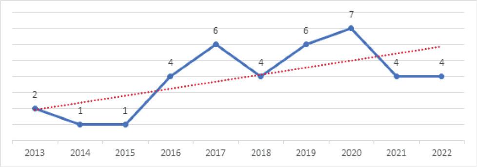 Considering the articles selected for this study, three journals stand out as they represent 41% of the total publications (Table 3). Taking into account the Tourism, Leisure and Hospitality Management category of Scimago Journal & Country Rank, the International Journal of Hospitality Management, Tourism Manage-ment and International Journal of Contemporary Hospitality Management are ranked 5th, 1st and 7th, respec-tively, in the year 2021.