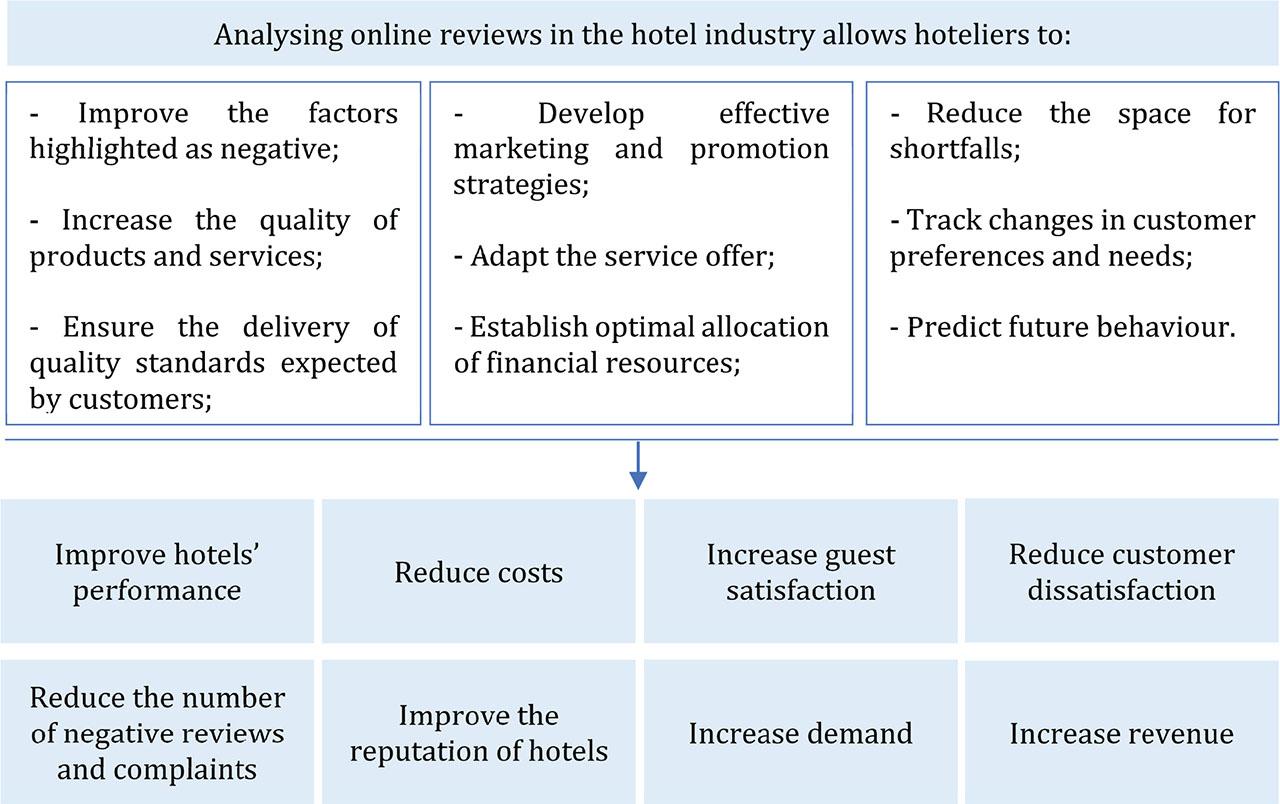 Indeed, analysing online reviews allows hoteliers to better understand their customers and benefit from a series of advantages that contribute to improving hotel performance. However, in order for hoteliers to take advantage of the information freely provided by customers, the use of suitable software for collection and analysis becomes indispensable, as well as the allocation of workers to regularly monitor it (Wu et al., 2017).