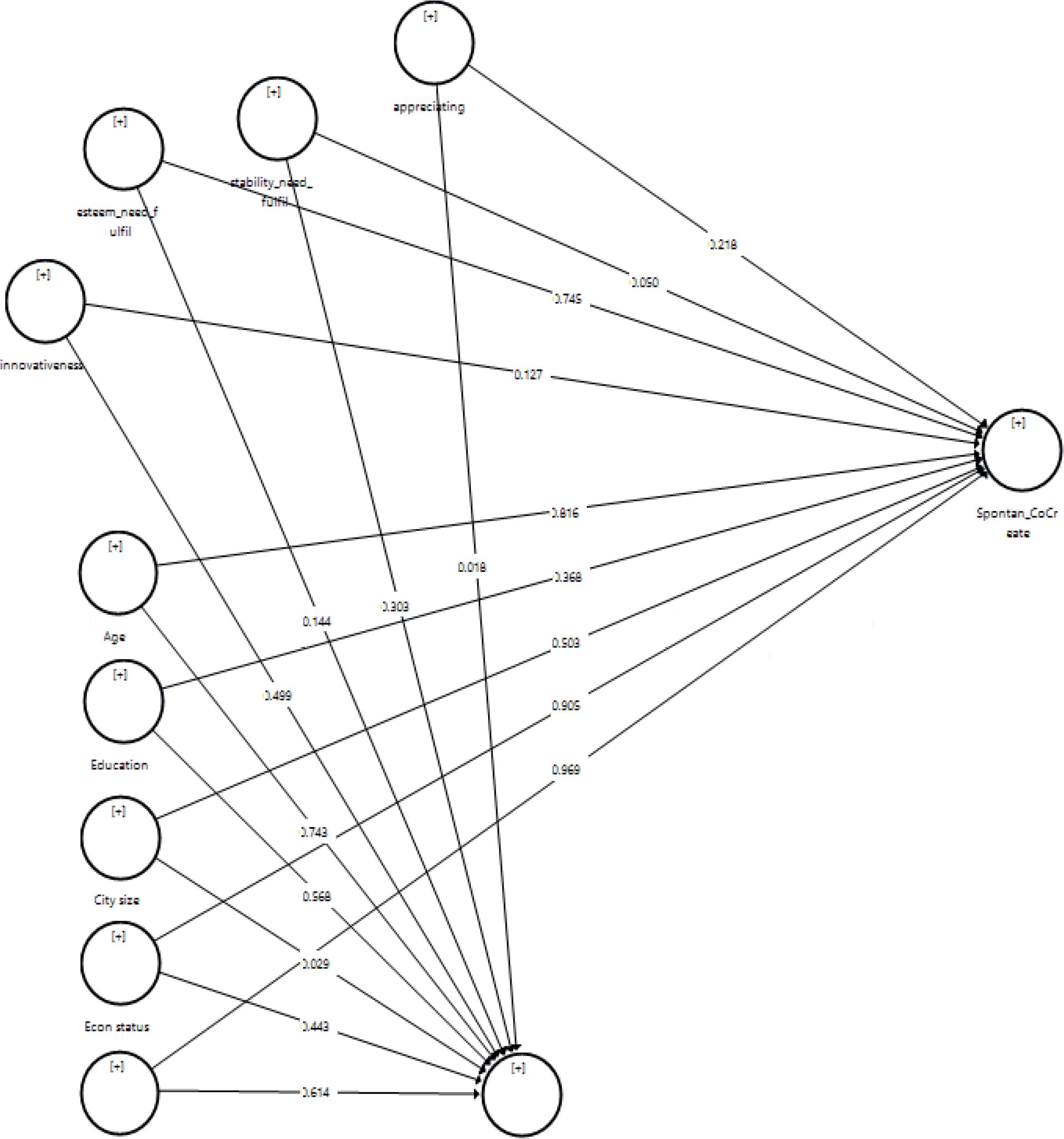 | Appreciation -> Spontan_CoCreate | 0.330 | −0.194 | 0.003 | 0.107 |