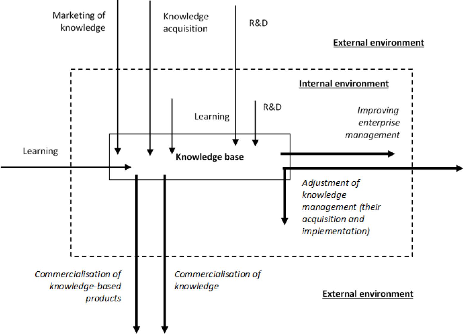Scheme depicting the production (acquisition) and utilisation (commercialisation) of knowledge at industrial enterprises