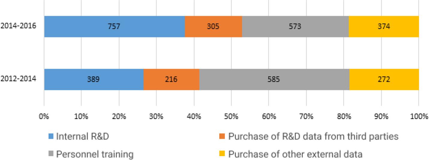 A significant share of innovation-active enterprises that had technological innovations received knowledge via staff training in 2012–2014, but in 2014–2016, the priorities changed in favour of the R&D implementation.