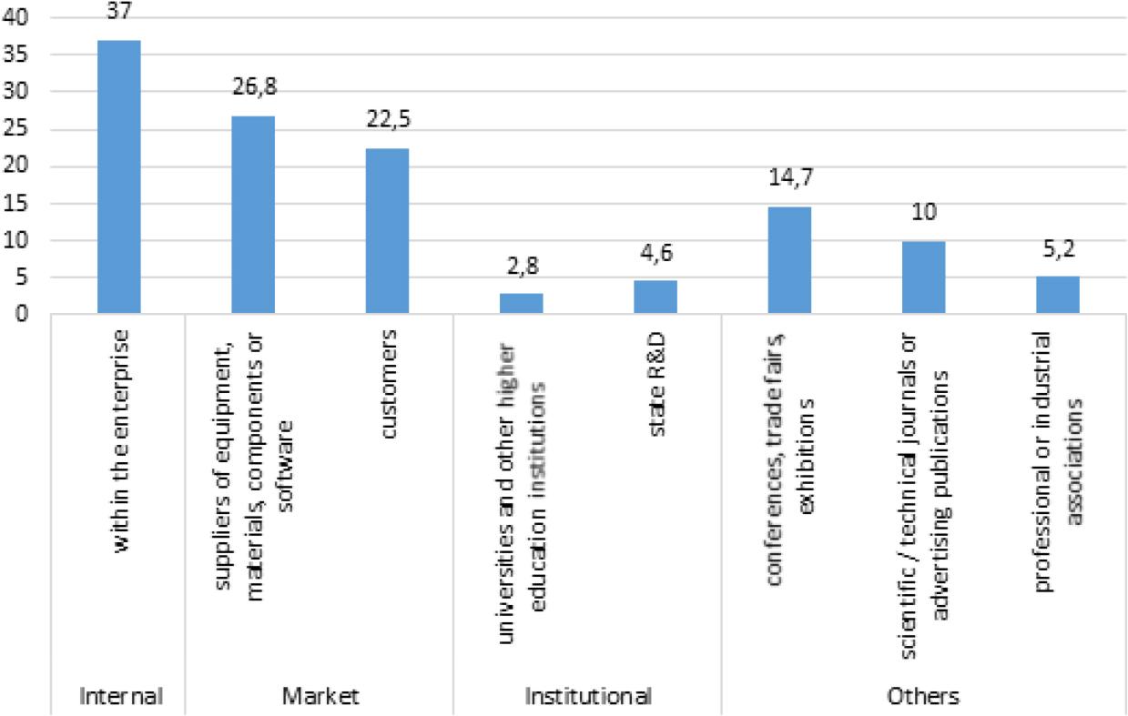 Fig. 2 summarises the results of the analysis, which defines the main sources of new knowledge used by innovative Ukrainian enterprises in 2012–2016.