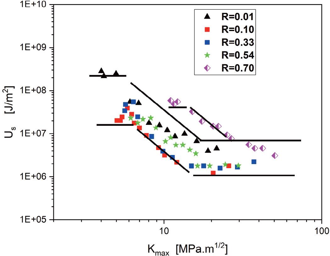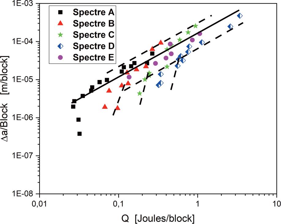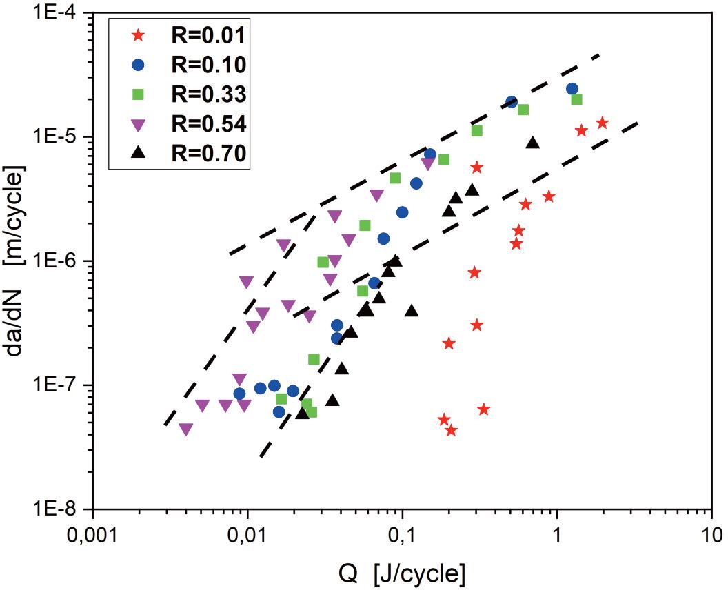 | da/dN | Crack growth rate (m/cycle) | Qi | Energy dissipated per cycle i |