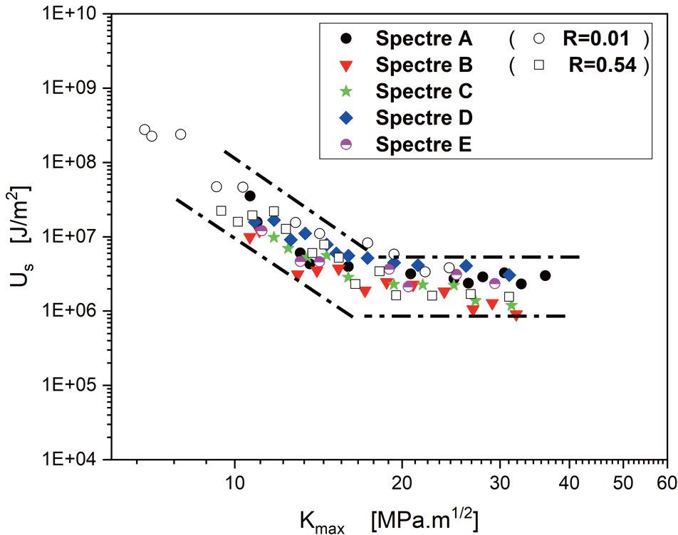 | Kmin, Kmax | Minimal and maximal stress intensity factor (MPa.m1/2) | W | Width (mm) |