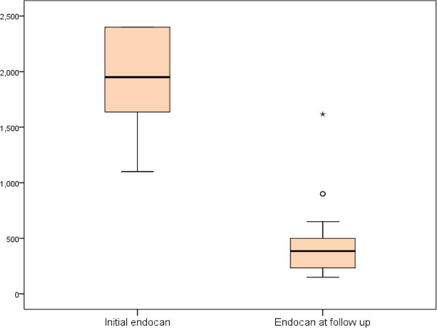 Comparison between initial endocan level and post-induction endocan.