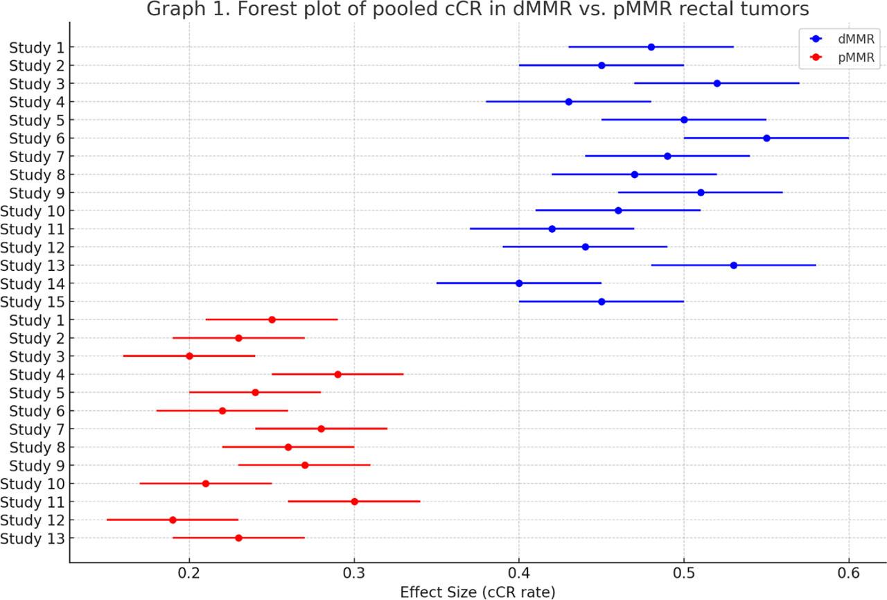 Forest plot of pooled cCR in dMMR versus pMMR rectal tumors.