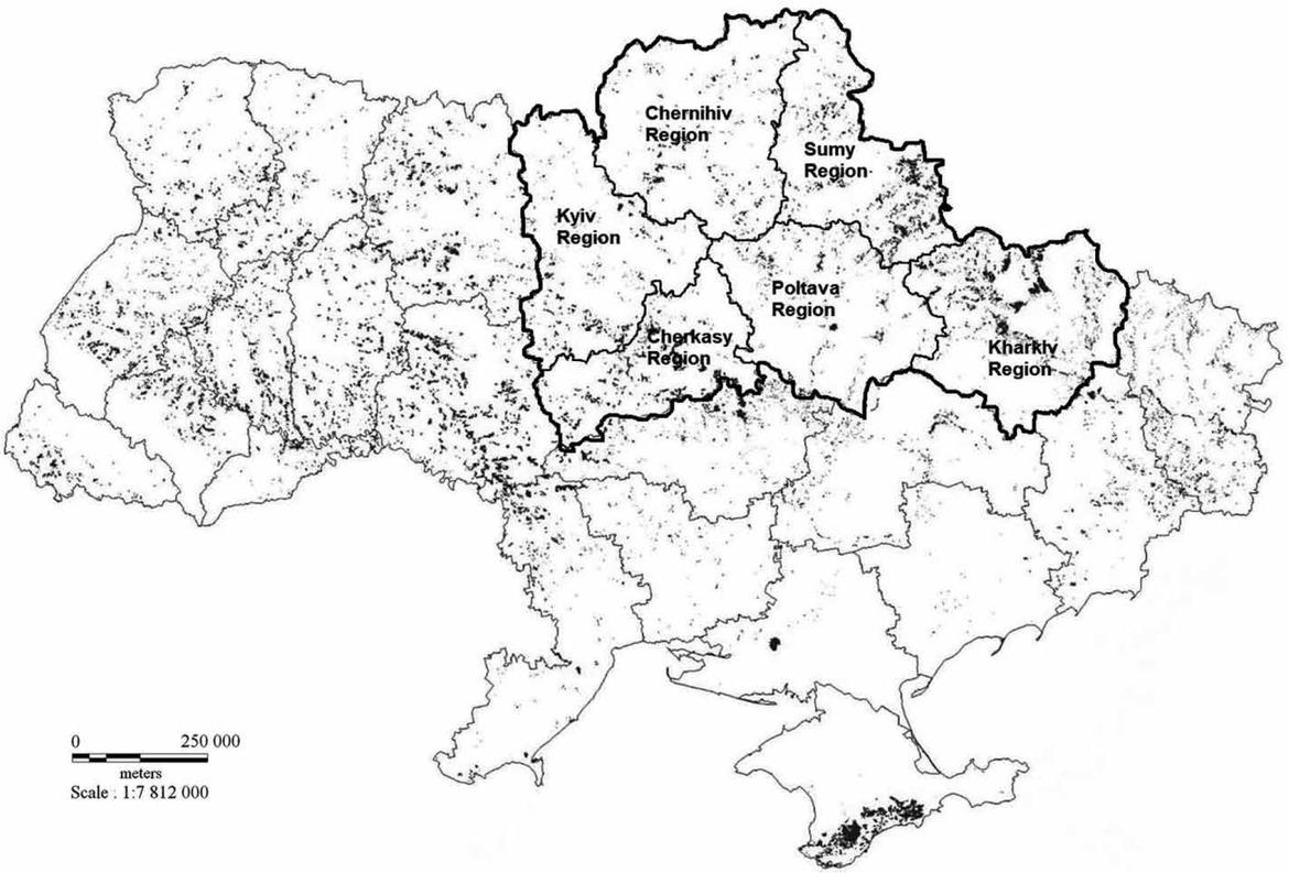 In Ukrainian forests, the total area of stands with a predominance of small-leaved lime in the canopy layer is almost 20.5 thousand hectares (only 0.3% of the total forest area). More than 80% – about 16.7 thousand hectares – of their total area is concentrated in eight administrative regions of the country, which are territorially assigned to the central, north-eastern and western parts of Ukraine: Cherkasy Region, Chernihiv Region, Kharkiv Region, Kyiv Region, Poltava Region, Sumy Region, Ivano-Frankivsk Region and Lviv Region.
