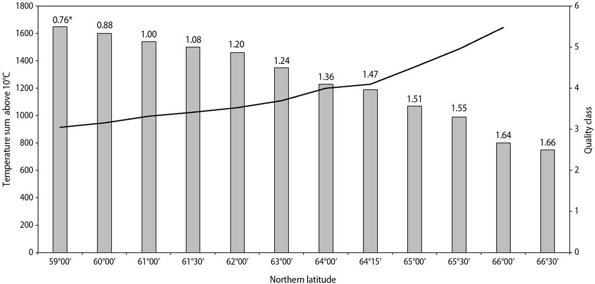 | Temperatures sum above 10°C | 0.578 | 0.632* | 0.238 | 0.168 |