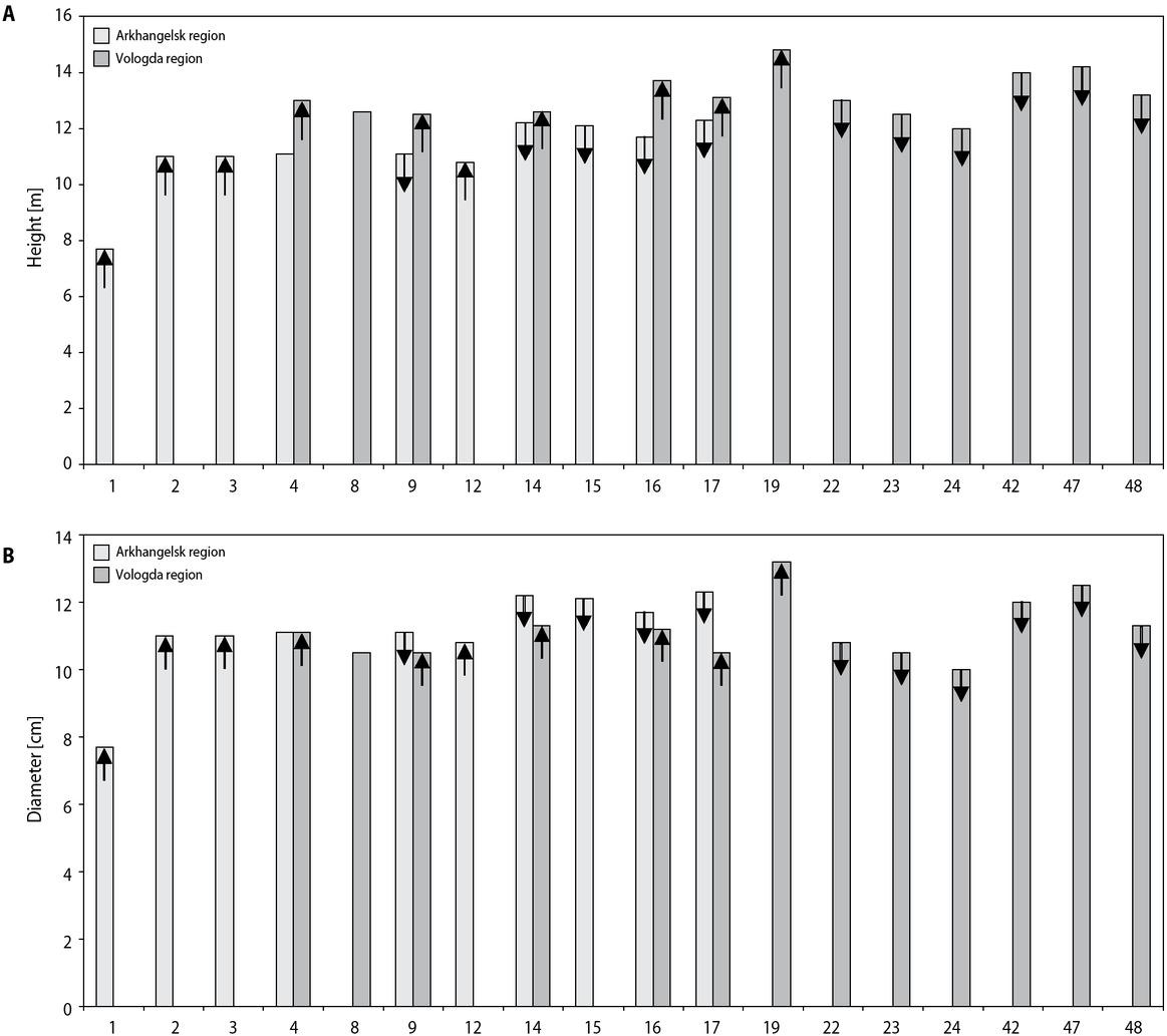 | height [m] | diameter [cm] | height [m] | diameter [cm] | |
