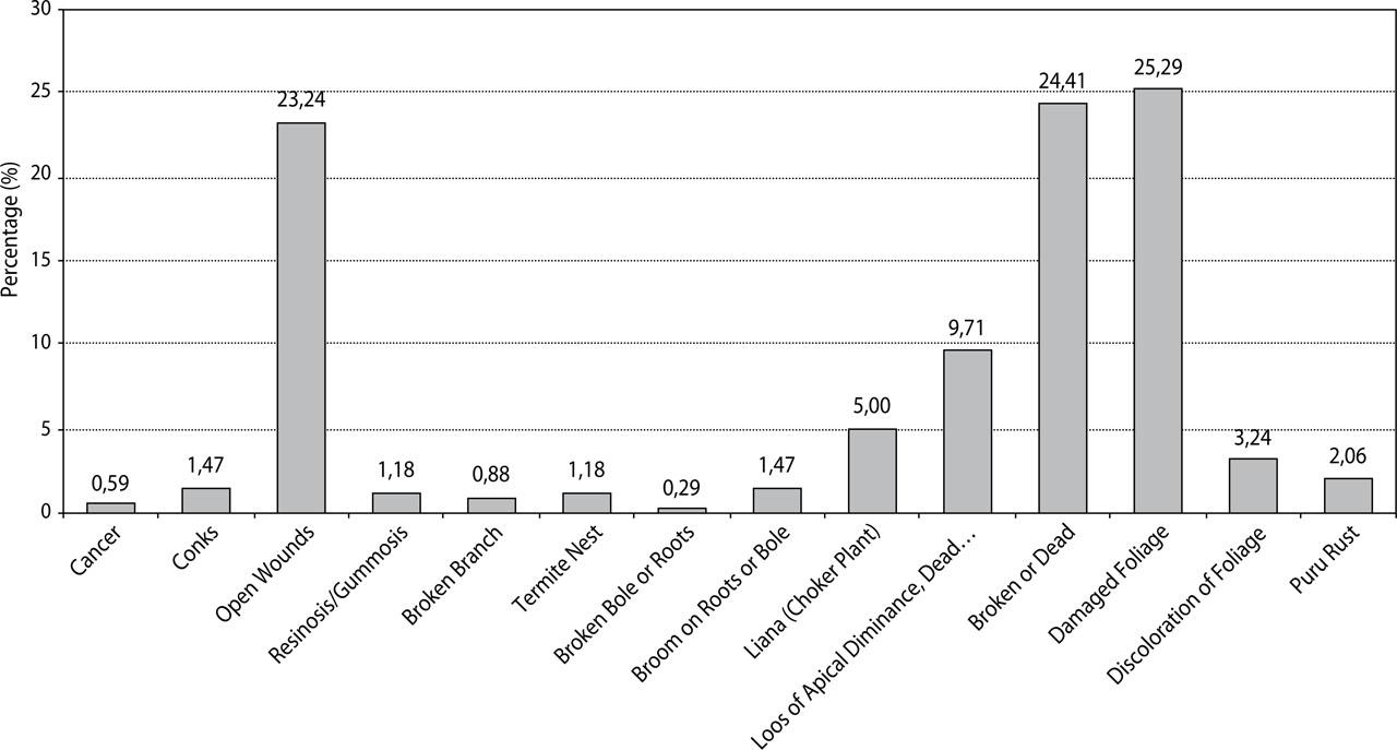 Graph of the percentage (%) each type of tree damage