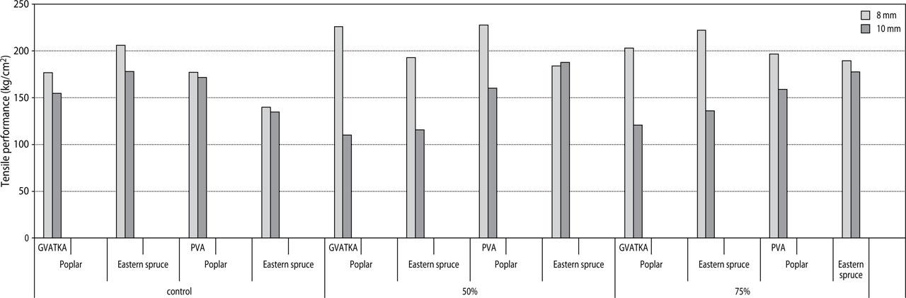 | Poplar | 800 × 10 × 8 | PVAc | Control | 6 | Eastern spruce | 800 × 10 × 8 | PVAc | Control | 6 |