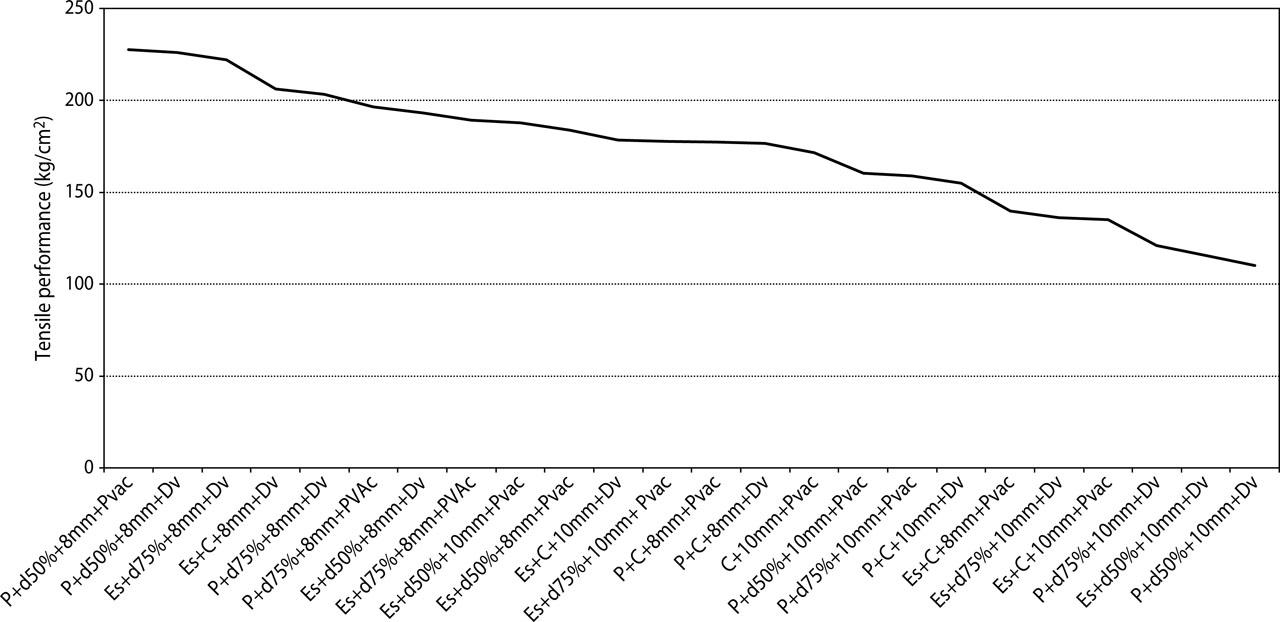 | Es + d50% + 10mm + PVAc | 187.6cde |