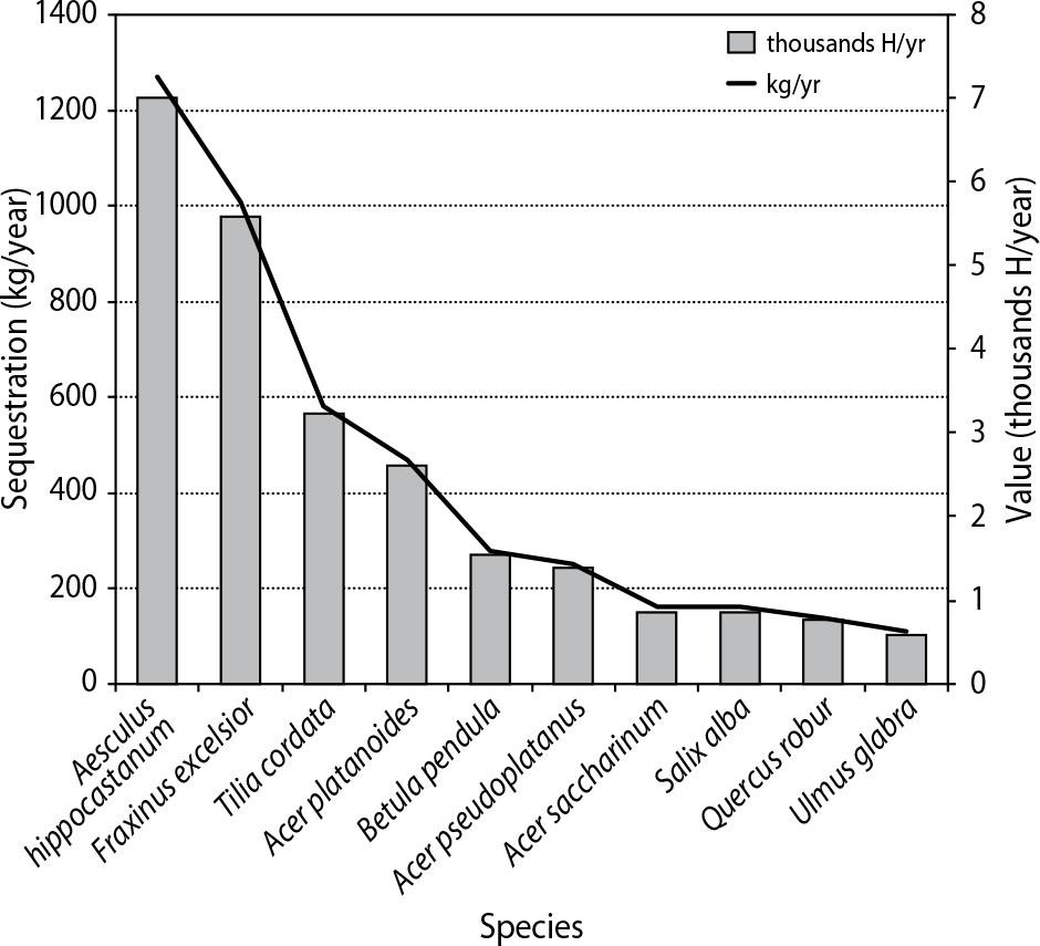 | 1 | Aesculus hippocastanum L. | 3380.40 | 1267.65 | 42 | 3.58 |