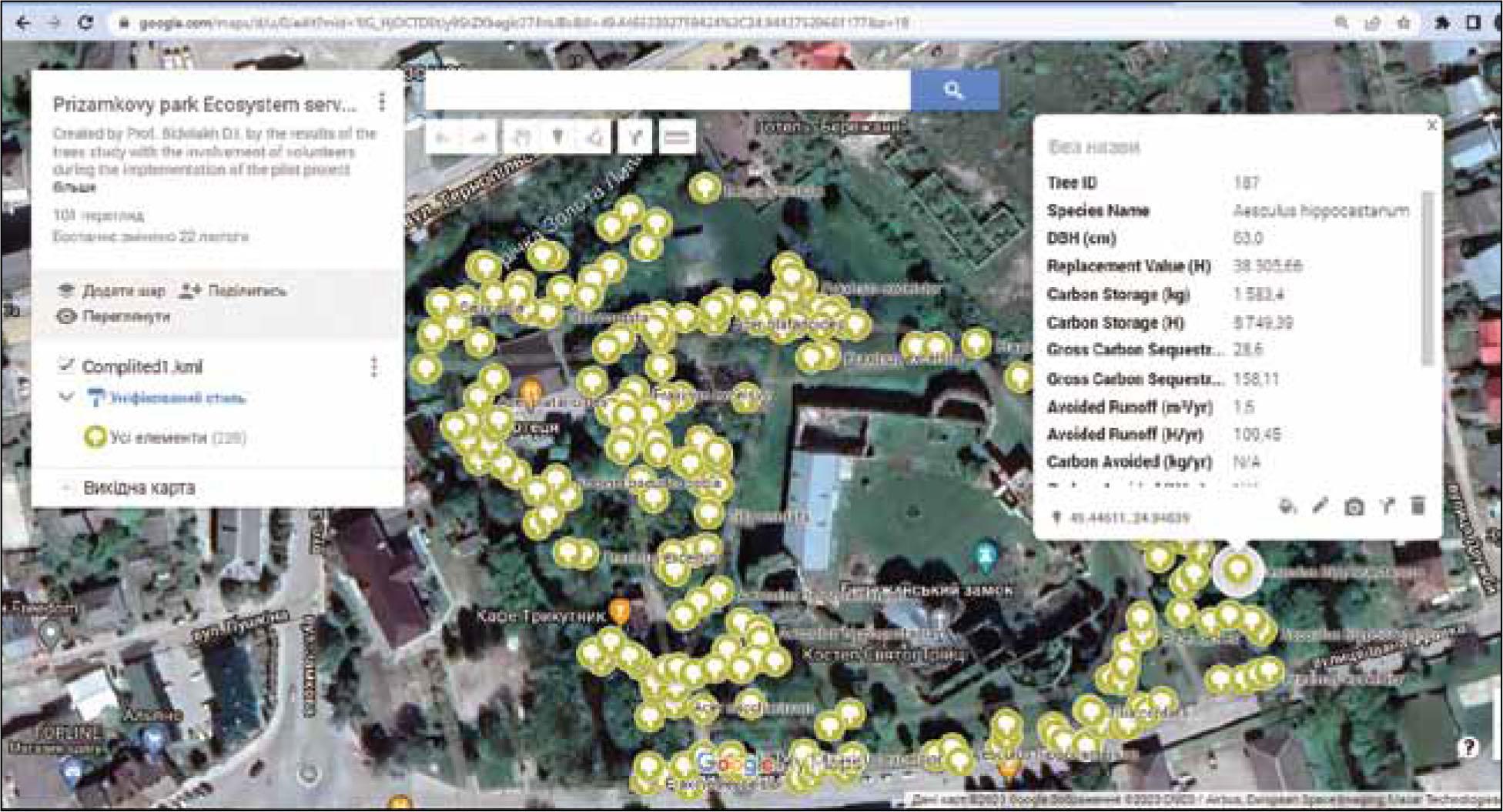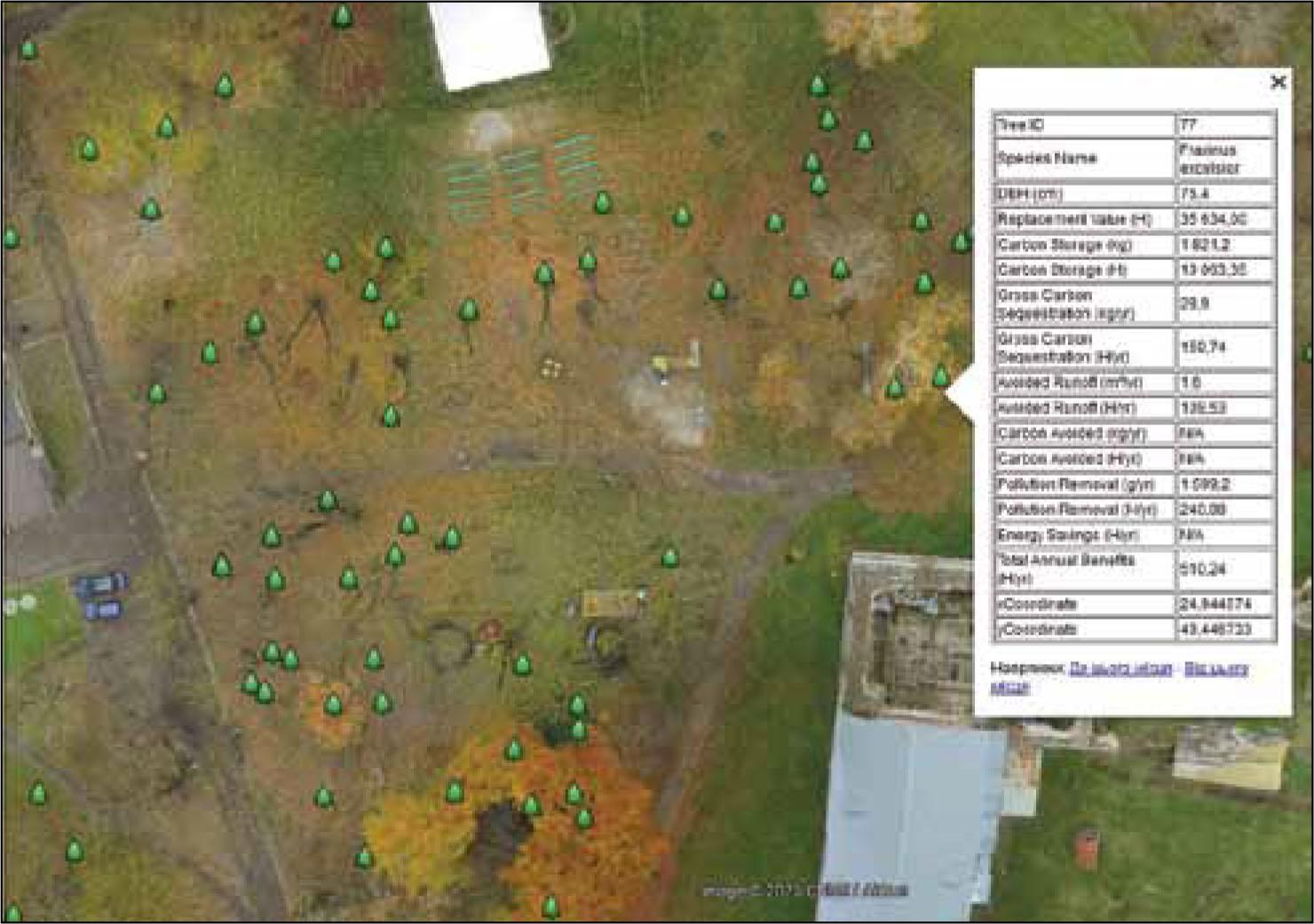 | 1. GPS Coordinates | The values of geographical longitude and latitude were determined by applying Garmin Etrex 22x and GPSMap64s receivers as well as using Samsung Galaxy M31 mobile phone geolocation function (GPS Point app) in order to compare the accuracy of the available methods of identifying the geographical coordinates of trees and bushes |
