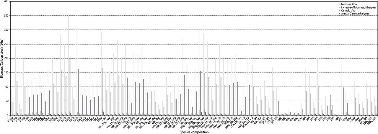 This explains the fact that from the point of view of biomass, it is uniformly produced in different forest ecosystems in the same geographical region.
