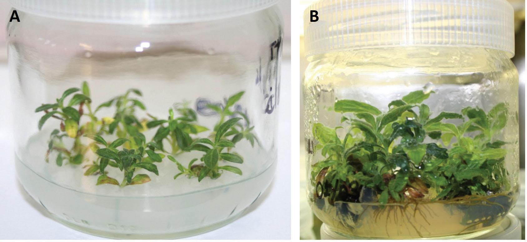 (A) Experimental unit at the beginning of the experiment: apical sprout from primary and secondary branches. (B) Experimental unit at the time of establishment in vitro.
