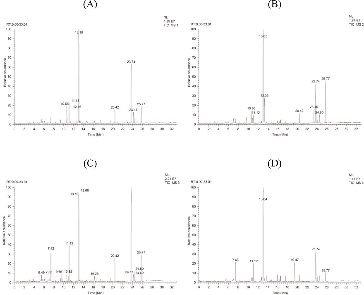 | A4 | β-Ocimene | 1,049 | 1,044 | 16.49 ± 0.13 | 17.56 ± 0.15 | 19.62 ± 0.14 | 13.97 ± 0.11 |