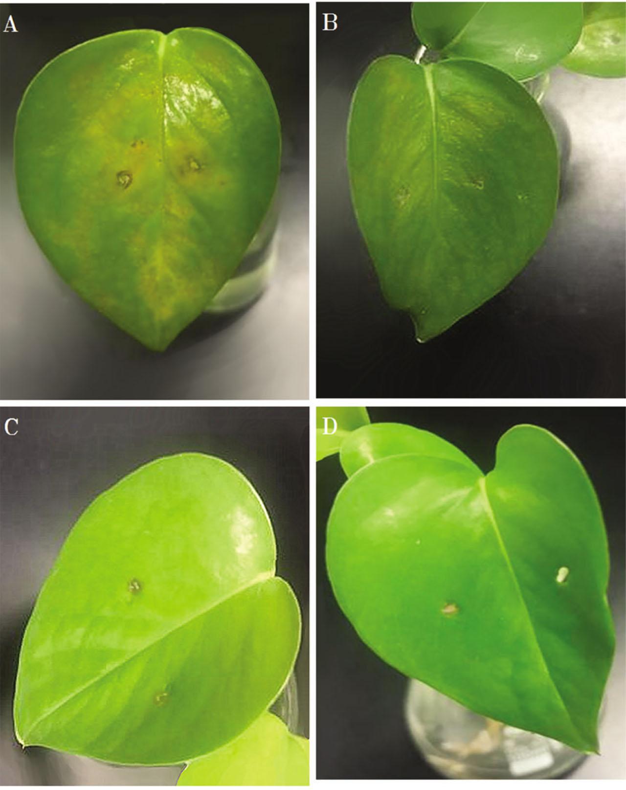 Leaves of similar size and no obvious mechanical damage were selected from healthy E. aureum and disinfected with 0.1% sodium hypochlorite for 1 min, washed with sterile water and cultured at room temperature (20 °C).