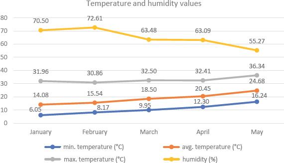Temperature and humidity values recorded in the greenhouse during the research periods.