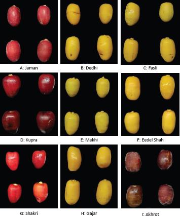 An efficient, quick, simple and reliable method is required for the study of morphological attributes of date palm fruits. The fruit characteristics are evaluated through manual methods in the laboratory for commercial purposes. These methods can be time-consuming and labour-intensive, which may hinder the evaluation of a large number of fruits and in turn limit the selection of excellent cultivars and their utilisation in further breeding programmes. Therefore, there is an urgent need to enhance the efficiency of the characterisation and evaluation of fruits of the date palm cultivars. So, digital imaging along with ImageJ application plays a significant role in the rapid characterisation and evaluation of a huge set of cultivars by reducing experimental error and time (Li et al., 2014). Digital imaging is considered one of the excellent computational methods to determine fruit size traits with high resolution (Wang et al., 2009; Lobet, 2017).