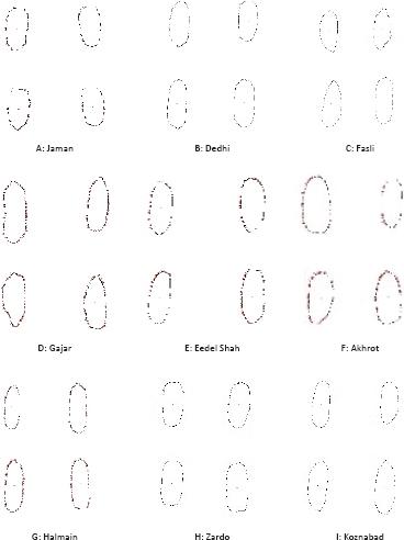 Morphological characterisation of fruits of 50 cultivars was performed using a digital imaging system. Pictures of fruits and their stones were captured using a camera (Canon EOS 700D, Canon Inc., Tokyo, Japan) in such a way that these pictures do not have any shadows. Twelve fruits were used from each cultivar. Pictures of fruits and their stones were taken in two directions, that is, horizontal position and vertical position, on a black paper to attain a proper colour background for better imaging analysis. All these pictures were labelled and saved as PNG files (Figures 2–5).