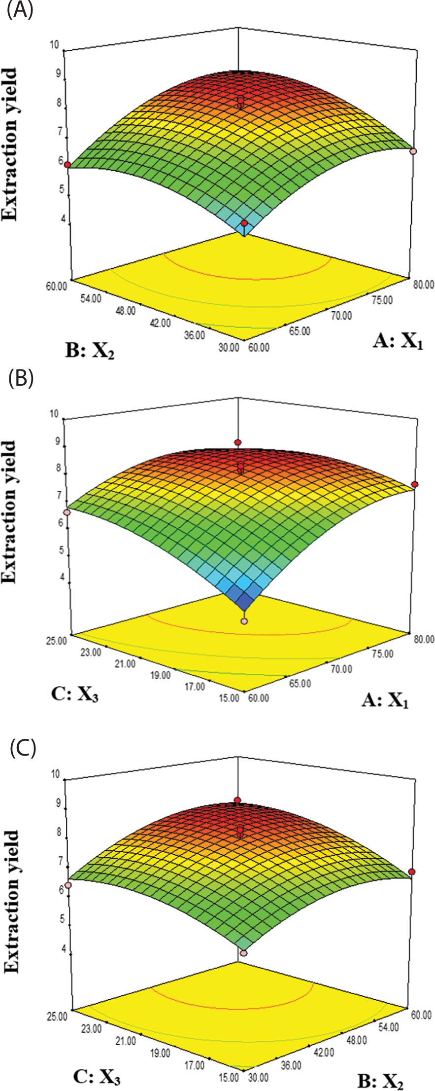 | Run | X1 | X2 | X3 | Extraction yield (mg · g−1) | |